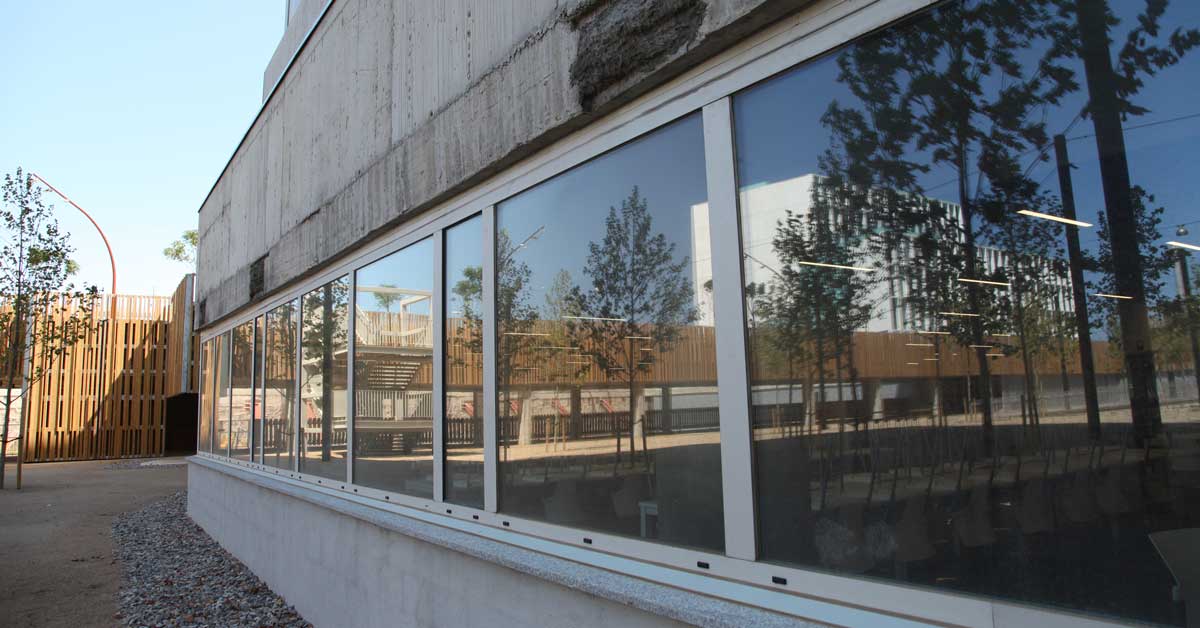 GARCIA FAURA ha intervingut fins al moment en l’anomenat Edifici A, que té un ús mixt de docència, recerca i serveis universitaris. El projecte, obra de l’arquitecte José Antonio Martínez Lapeña, i amb un sostre edificable de 20.000 metres quadrats, combina diferents alçades fins a un màxim de 10 plantes més coberta. La tasca de l’empresa s’ha centrat en la fabricació i instal·lació de 10.000 metres quadrats de tancaments d’alumini i vidre, practicables i corredissos en funció dels usos i necessitats de cada espai. El conjunt de portes i finestres de tot l’edifici, en acabat anoditzat plata mat, està conformat per perfileria d’alumini amb trencament de pont tèrmic i vidrieria d’altes prestacions tècniques.